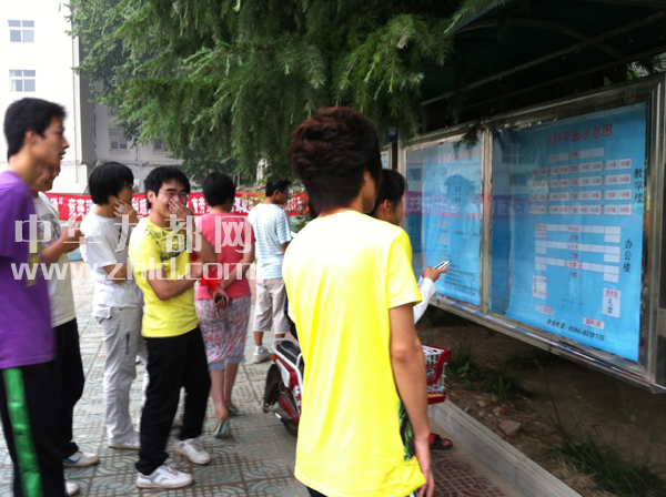 上圖:考生們陸續(xù)到所屬考點(diǎn)查看考場平面示意圖。 (記者 王映攝)