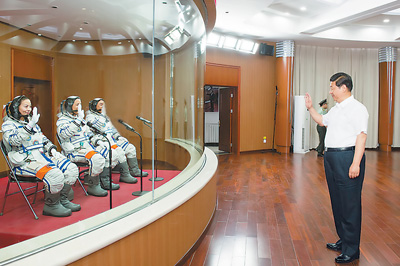 11日中午,習(xí)近平在酒泉衛(wèi)星發(fā)射中心聽取了天宮一號與神舟十號載人飛行任務(wù)有關(guān)情況匯報。習(xí)近平充分肯定各參研參試單位和部門為完成神舟十號載人航天飛行任務(wù)所做的大量準(zhǔn)備工作。習(xí)近平說,這次任務(wù)飛行時間長,試驗難度大,面臨一系列新的挑戰(zhàn)和考驗。希望同志們牢記使命、堅定信心、周密組織、科學(xué)實施,確保實現(xiàn)既定的任務(wù)目標(biāo),努力奪取載人航天事業(yè)發(fā)展新勝利。