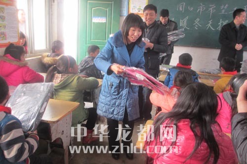 ???????2月3日,共青團(tuán)項城市委在該市開展了“關(guān)愛留守兒童”溫暖冬日活動,志愿者把圍巾、帽子、書包等愛心物品送給蓮花辦事處徐樓行政村的留守兒童,為他們送去溫暖和關(guān)愛?! ⊥韴笥浾?金月全 攝 線索提供 張紀(jì)友