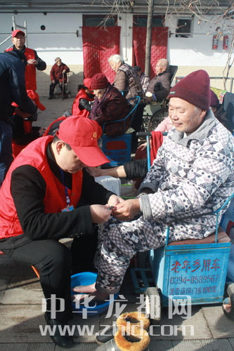 12月2日,十多名來(lái)自周口傳德公益愛(ài)心QQ群的志愿者來(lái)到周口中心城區(qū)建設(shè)東路附近一敬老院,為這里的老人送來(lái)蛋糕、牛奶等慰問(wèn)品,并為老人理發(fā)、洗腳。