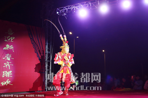????還記得小時候我們搬著小板凳到村頭看電影或聽戲嗎?如今啊,農(nóng)民不再看電影聽戲了,而是開始在村頭辦“村晚”啦。2月2日晚上,太康縣老冢鎮(zhèn)孟莊行政村舉辦了一臺猴年“村晚”。演出現(xiàn)場震天的鼓點和著嗩吶的節(jié)拍,熱鬧非凡。英俊的公子、羞怯的大家閨秀,神采奕奕的大爺大媽,一個個生動的角色,一段段幽默詼諧的節(jié)目,吸引著附近數(shù)十個村的兩萬余名村民在此觀看。