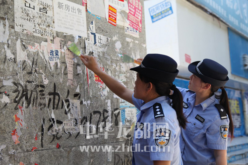 ????為深入推進(jìn)創(chuàng)建省級(jí)文明城市工作,周口市公安局荷花分局民警走上街頭,逐一鏟除張貼在墻上、電線(xiàn)桿、商鋪門(mén)口等地方的小廣告。