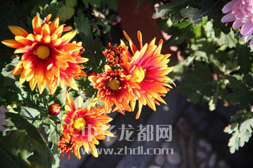 ????金秋時節(jié),菊花盡情綻放,一團(tuán)團(tuán)、一簇簇,紫的像霞,白的如雪,紅的似火,黃的像金,五彩斑斕,琳瑯滿目。葛英 攝