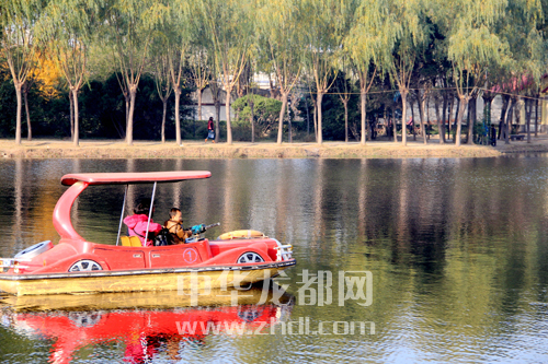 ????時(shí)值初冬,周口人民公園內(nèi)爛漫秋色還未褪去,紅楓、銀杏等樹(shù)葉,紅似火、黃如金,色彩斑斕,組成了如詩(shī)如畫(huà)的美景。人們置身其中,其樂(lè)融融。葛英 攝