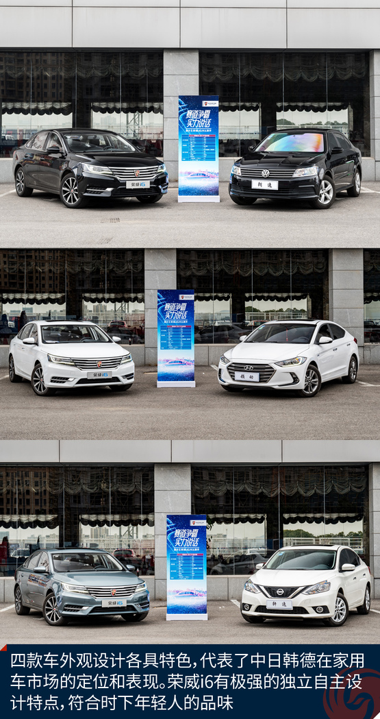 鳳凰汽車(chē)·搶先試駕?榮威i6可以說(shuō)打響了互聯(lián)網(wǎng)家轎的第一槍,它是繼RX5之后,榮威旗下的第二款重量級(jí)產(chǎn)品,延續(xù)了榮威RX5家族律動(dòng)美學(xué)的優(yōu)良基因。上市十天訂單便突破萬(wàn)輛大關(guān),是一款非常有潛力挑戰(zhàn)合資競(jìng)品的車(chē)型。但是光說(shuō)不練,假把勢(shì)。今天我們就在江蘇萬(wàn)馳的賽道場(chǎng)地內(nèi),特意選取了同級(jí)合資老炮軒逸16款1.6LXV CVT智享版、朗逸17款1.6L自動(dòng)舒適版、領(lǐng)動(dòng)?16款 1.4T 雙離合炫動(dòng)?精英型,和榮威i6 20T互聯(lián)網(wǎng)智尊版做個(gè)對(duì)比,看看這些銷量過(guò)萬(wàn)的合資家轎與新晉的小鮮肉榮威i6到底誰(shuí)更勝一籌?