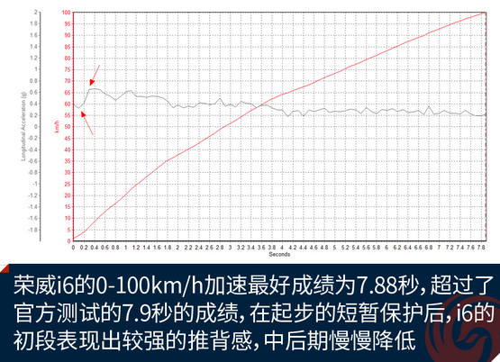 在動(dòng)力方面,榮威i6搭載了上汽“藍(lán)芯”SGE 20T發(fā)動(dòng)機(jī),采用缸內(nèi)中置直噴渦輪增壓、高效氣門(mén)配氣機(jī)構(gòu)等國(guó)際領(lǐng)先技術(shù),配合TST 7速雙離合變速器,榮威i6最大功率169馬力,比朗逸、軒逸和領(lǐng)動(dòng)分別高出了59馬力、43馬力、39馬力。而實(shí)際測(cè)試中也證實(shí)了這一點(diǎn),榮威i6在加速和剎車(chē)方面確實(shí)領(lǐng)先于競(jìng)品車(chē)型。7.88秒的0-100km/h的加速成績(jī)確實(shí)讓人大吃一驚,榮威i6表現(xiàn)出了極高的運(yùn)動(dòng)化調(diào)教。剎車(chē)方面,榮威i6也表現(xiàn)相當(dāng)出色,36.59米的剎車(chē)距離,可以跟一些性能車(chē)相提并論。300mm的通風(fēng)剎車(chē)片功不可沒(méi),整個(gè)制動(dòng)過(guò)程有力平穩(wěn),車(chē)身懸掛對(duì)于點(diǎn)頭的抑制也很到位。