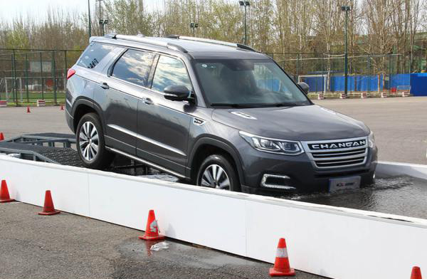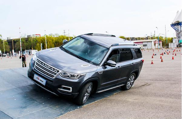 第三個項目是緊急避讓,體驗車輛抓地性;接下來的側面斜坡項目長安CS95順利通過,車身并未有異響。