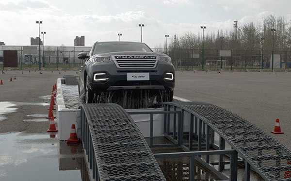 下面的涉水環(huán)節(jié),長安CS95表現(xiàn)非常穩(wěn)??;涉水之后就來到了起伏和顛簸路面,稍軟的懸架使得車內乘客并未感覺不舒適。