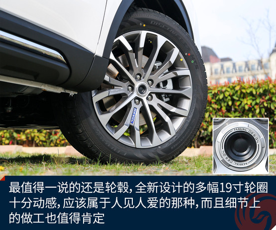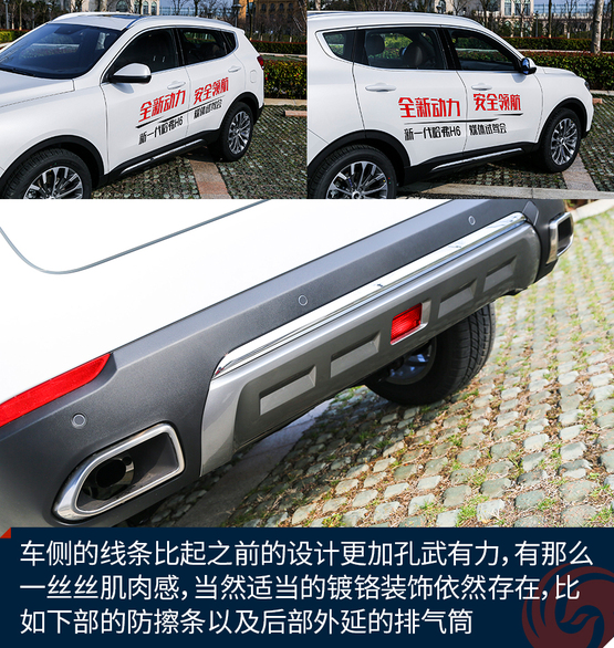 開眼角的設(shè)計(jì)雖然已經(jīng)有一陣子了,但是哈弗H6也是剛剛用上,而且頭燈的設(shè)計(jì)很簡潔,但是與六邊形的前進(jìn)氣格柵搭配的感覺剛剛好,在視覺上帶來了十分不錯(cuò)的沖擊力。車側(cè)的線條比起之前的設(shè)計(jì)更加孔武有力,有那么一絲絲肌肉感,當(dāng)然適當(dāng)?shù)腻冦t裝飾依然存在,比如下部的防擦條以及后部外延的排氣筒。最值得一說的還是輪轂,全新設(shè)計(jì)的多幅19寸輪圈十分動(dòng)感,應(yīng)該屬于人見人愛的那種,而且細(xì)節(jié)上的做工也值得肯定。