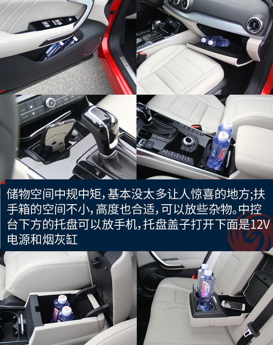 體驗者身高175厘米,前排座椅降到最低的時候頭部還有比較充足的余量,完全不會感覺到壓抑;不過后排頭部就不太行了,頭部距離車頂非常接近,要是身高再高一些的乘客坐進(jìn)后排,已經(jīng)基本上快頂?shù)筋^了。儲物空間中規(guī)中矩,基本上沒有太多讓人驚喜的地方。扶手箱的空間不小,高度也合適,可以放些雜物。