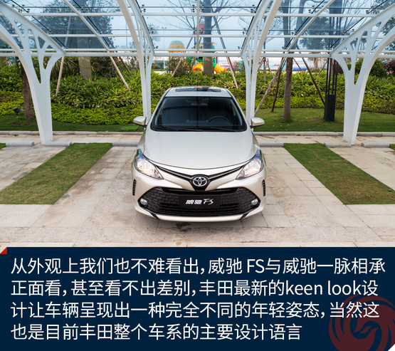 從外觀上我們也不難看出,威馳 FS與威馳一脈相承,正面看,甚至看不出兩車的差別,豐田最新的keen look設計讓車輛呈現(xiàn)出一種完全不同的年輕姿態(tài),當然這也是目前豐田整個車系的主要設計語言,就是要讓車輛更顯年輕運動。大嘴的設計讓威馳 FS頗顯得有些頑皮,而且在這張大嘴中還隱藏了許多四邊型的裝飾塊,在大嘴兩側(cè)是兩道裝飾性的“八字胡”,除此之外是一雙大大的眼睛,這一副調(diào)皮可愛的模樣,相信不少年輕人都會喜歡。