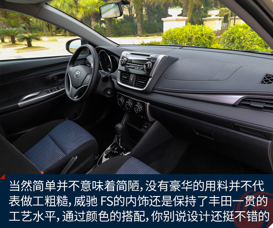 當然簡單并不意味著簡陋,沒有豪華的用料并不代表做工粗糙,威馳 FS的內(nèi)飾還是保持了豐田一貫的工藝水平,并且通過黑色與銀色相互的搭配,你別說,這個內(nèi)飾的設計還挺不錯的。