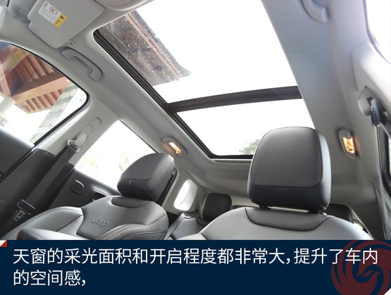 新指南者橫向空間和腿部空間表現(xiàn)都不錯,在頭部空間上略有欠缺,后排在坐直的情況下,頭部空間比較壓抑,幸好全景天窗可以彌補(bǔ)這一點(diǎn),指南者的全景天窗擴(kuò)展了車內(nèi)的采光面積及視覺廣度。