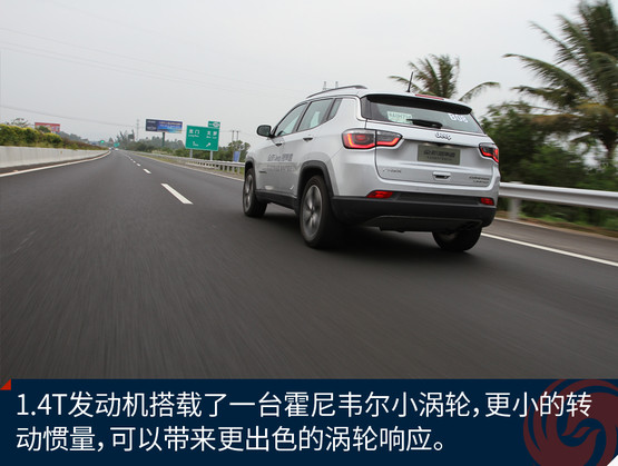 1.4T的版本很遺憾沒有配備四驅(qū)系統(tǒng),注重公路性能是它的全部,在城市路面上駕駛,指南者表現(xiàn)的很輕松輕盈,電子助力方向盤手感很輕。全新Jeep指南者還動態(tài)底盤——四輪獨(dú)立懸掛+主動自適應(yīng)減震系統(tǒng)。這套減震系統(tǒng)能夠在微秒間自動感應(yīng)路面回饋,實(shí)時改變阻尼大小,從“最軟”到“最硬”只需0.2秒。可以感受到的是這套減震器對于路面的坑洼抑制的非常好,濾震出色,車廂內(nèi)感受到的晃動很少。在彎道上的側(cè)向支撐相對就弱一點(diǎn),這也是魚和熊掌的原因。