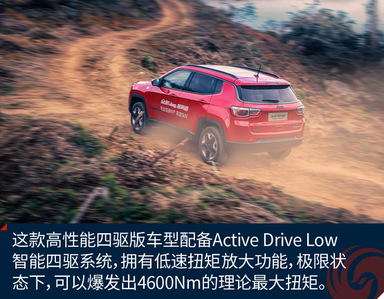 如果你想去挑戰(zhàn)一點(diǎn)不平凡,那么你需要的是Trailhawk版本,Trailhawk版本在外觀上也變得更加強(qiáng)悍,突出了Jeep的越野本性,這款高性能四驅(qū)版車型配備Jeep家族獨(dú)有的Active Drive Low智能四驅(qū)系統(tǒng),擁有低速扭矩放大功能,極限狀態(tài)下,可以爆發(fā)出4600Nm的理論最大扭矩,輕松應(yīng)對復(fù)雜的路況挑戰(zhàn)。在路況良好時,后軸智能電子分離技術(shù),會讓車輛以前驅(qū)狀態(tài)形式,獲得更好的燃油經(jīng)濟(jì)性;當(dāng)路況比較復(fù)雜需要更大抓地力時,會自動切換到四驅(qū)狀態(tài)。專業(yè)陡坡緩降功能,HDC陡坡緩降系統(tǒng)可在各種行駛條件的下坡行駛保持車速。