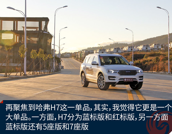 再聚焦到哈弗H7這一單品,其實(shí),我覺(jué)得它更是一個(gè)大單品。一方面,H7分為藍(lán)標(biāo)版和紅標(biāo)版,另一方面,藍(lán)標(biāo)版還有5座版和7座版。關(guān)于定位,紅標(biāo)5座,大氣、豪華;藍(lán)標(biāo)5座,時(shí)尚、運(yùn)動(dòng);藍(lán)標(biāo)7座,沉穩(wěn)、硬朗。據(jù)悉,未來(lái)不排除推出紅標(biāo)7座版車型,具體需要根據(jù)市場(chǎng)反饋來(lái)決定。