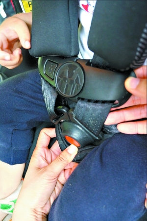兒童安全座椅的安全帶是五點(diǎn)式,不僅左右扣,還得上下鎖,扣上之后,還得拉緊安全帶,以確保安全性,但同時(shí)安全帶不能拉得太緊。