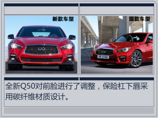 ??? Q50是英菲尼迪旗下的中型轎車,全新車型已在今年3月的日內(nèi)瓦車展上首發(fā)亮相。網(wǎng)上車市從美國汽車媒體motor1獲得一組2018款英菲尼迪車型圖片。新車對外觀進(jìn)行了調(diào)整,并增搭了3.6L V6混動(dòng)系統(tǒng)。