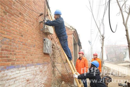 圖為1月16日,縣桐丘電力工程有限公司工程三部施工人員正在對(duì)汴崗鎮(zhèn)水泉村進(jìn)行變壓器更換和高、低壓線路改造施工。