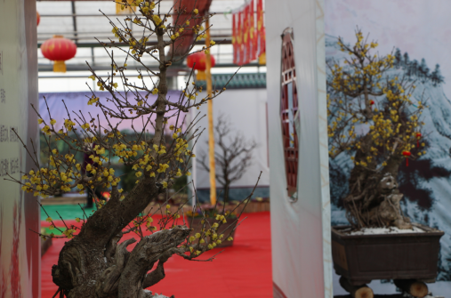 今天上午,大河客戶端記者在梅花展廳看到,不同品種的梅花被做成了盆景造型,配以雪花、茅屋、窗臺點綴,形成一道道獨特的景觀。怒放的花朵、含羞的花苞,數(shù)千平米的展廳內(nèi)香氣四溢,惹得游人如癡如醉。
