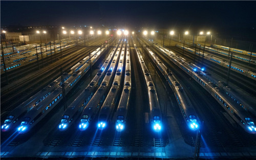 2月1日,動(dòng)車組列車??吭谔旖騽?dòng)車客車段動(dòng)車運(yùn)用所。