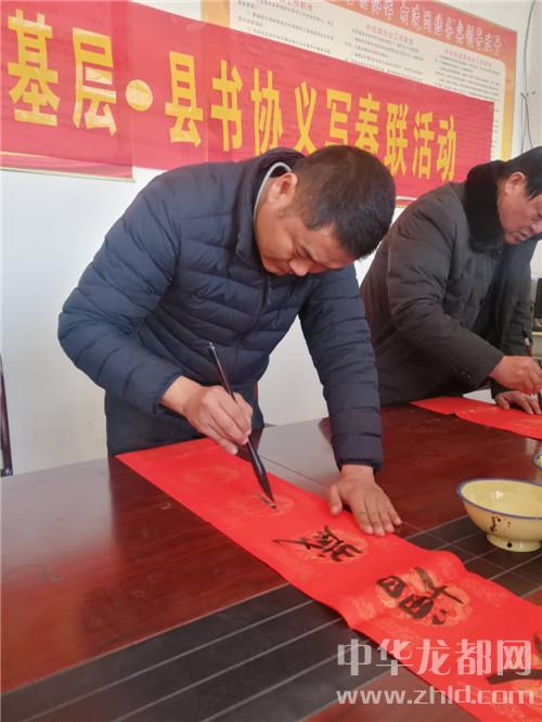 中華龍都網(wǎng)訊(周口報業(yè)全媒體記者 徐松)2月8日上午,由鄲城縣委統(tǒng)戰(zhàn)部駐村辦、鄲城縣文聯(lián)、鄲城縣青年書法家協(xié)會共同組織的“禮贊新時代,新春送萬福——鄲城縣文聯(lián)紅色文藝輕騎兵新春走基層青年書法家送萬福進(jìn)萬家義寫”活動在鄲城縣虎崗鄉(xiāng)后趙行政村村室舉行,來自鄲城縣青年書法家協(xié)會的十余名著名書法家在現(xiàn)場揮毫潑墨,義務(wù)書寫了二百幅“?!弊趾痛郝?lián),用喜盈盈、紅燦燦的春聯(lián)為廣大貧困戶提前送去狗年的祝福。