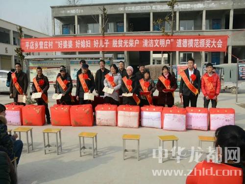 中華龍都網(wǎng)訊(周口報(bào)業(yè)全媒體記者 付永奇 趙永昌 文/圖))2月10日下午,商水縣平店鄉(xiāng)曾莊小學(xué)操場(chǎng)內(nèi),人頭攢動(dòng)、熱鬧非凡,村里評(píng)選出來(lái)的10位好婆婆、好媳婦、好兒子、清潔文明戶、脫貧光榮戶等“五好”群眾代表身披綬帶、胸戴紅花,臉上都洋溢著幸福的喜悅;一些民間文藝團(tuán)體分別助興表演了挑花籃、扇子舞、廣場(chǎng)舞等喜慶的節(jié)目,把現(xiàn)場(chǎng)氣氛烘托得異常隆重?zé)崃??!盀楹霌P(yáng)社會(huì)公德、家庭美德,提升群眾素質(zhì)和文明程度,春節(jié)來(lái)臨之際我們召開(kāi)‘五好’表彰大會(huì),下面有請(qǐng)鄉(xiāng)黨委副書(shū)記、鄉(xiāng)長(zhǎng)徐汝濤給大家講話......”隨著主持人、鄉(xiāng)紀(jì)委書(shū)記劉新光的開(kāi)場(chǎng)白,臺(tái)下響起了一陣熱烈的掌聲。“開(kāi)展好婆婆、好媳婦、好兒子、清潔文明戶、脫貧光榮戶等模范家庭人物評(píng)選是我鄉(xiāng)精神文明建設(shè)工作的一項(xiàng)重大舉措,也是脫貧攻堅(jiān)、農(nóng)村人居環(huán)境整治、文明鄉(xiāng)風(fēng)提升的部分內(nèi)容,更是弘揚(yáng)孝親敬老、勤勞致富、講究衛(wèi)生等優(yōu)良傳統(tǒng)的需要。全鄉(xiāng)各村都要通過(guò)召開(kāi)評(píng)選表彰大會(huì),引導(dǎo)廣大人民群眾學(xué)先進(jìn)、爭(zhēng)先進(jìn),為文明和諧平店建設(shè)做出更大的貢獻(xiàn)......”徐汝濤提出殷切的希望。曾莊行政村“兩委”成員、駐村工作隊(duì)、第一書(shū)記及部分群眾200余人參加了會(huì)議。與會(huì)領(lǐng)導(dǎo)為此次層層推薦評(píng)選出的好婆婆、好媳婦、好兒子、清潔文明戶、脫貧光榮戶頒發(fā)了榮譽(yù)證書(shū)和獎(jiǎng)品。據(jù)村支部書(shū)記曾紀(jì)靈介紹,這些“五好”模范都有感人的故事,或是講究衛(wèi)生、勤儉持家,孝老敬親、患難與共;或是鄰里互助、脫貧致富;他們用實(shí)際行動(dòng)證明了自己對(duì)文明風(fēng)尚的價(jià)值追求,在生活中書(shū)寫(xiě)了一個(gè)個(gè)接地氣的好故事,為廣大家庭樹(shù)立了好榜樣。受表彰的好婆婆胡秀英說(shuō):“把媳婦當(dāng)閨女,啥時(shí)候也不會(huì)吵架生氣......”清潔文明戶朱國(guó)申說(shuō):“農(nóng)村環(huán)境臟亂差,咱要帶頭改變它......”脫貧光榮戶劉前進(jìn)說(shuō):“國(guó)家扶貧政策好,不如早點(diǎn)摘掉貧困帽!”