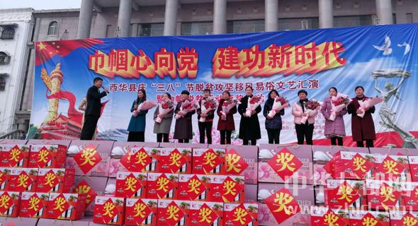 3月5日,西華縣舉辦慶“三八”婦女節(jié)脫貧攻堅移風易俗文藝會演,對64名優(yōu)秀女性和3個團體進行了表彰。記者姬慧洋攝