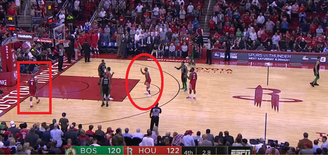 在比賽進(jìn)行到最后2.8秒的時候火箭只領(lǐng)先綠軍2分,這也就是說什么事情都可能會發(fā)生。而在這個時候火箭發(fā)邊線球,就當(dāng)火箭要發(fā)球的時候我們從上圖可以看到有6名球員在場上,而這個時候大局觀智商高超的保羅一眼就看了出來,他先是對著塔克大喊出去不過這時的塔克依舊慢慢悠悠,而這時的保羅都已經(jīng)跳了起來怒吼塔克讓其趕快出去。不得不說如果不是保羅這智商這大局觀一旦火箭發(fā)出球來那么無疑就是一個技術(shù)犯規(guī),那么最終火箭能不能取得勝利就真的不好說了。