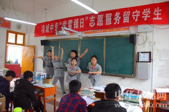 為了更好地傳承雷鋒精神,3月6日,項(xiàng)城市中等專業(yè)學(xué)校志愿服務(wù)隊(duì)走進(jìn)學(xué)校,來到留守學(xué)生身邊,給他們送去一場精彩的文藝演出。