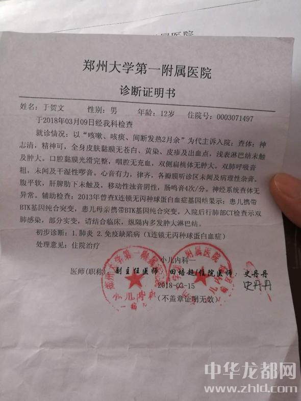 “肺炎、免疫缺陷病(X連鎖無丙種球蛋白血癥)”,2018年3月15日,來自鄭大一附院的一張化驗單讓于東兩口子徹底崩潰了。于東說,拉拉扯扯求醫(yī)四五年,有時候檢測結(jié)果證明是孩子先天性免疫力低下,疑似造血功能不完善,但他不敢相信。由于家庭貧困,他們四處借債在縣、鄉(xiāng)、村三級醫(yī)院救治。