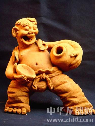 張振福作品中的人物都有一個(gè)共同的特點(diǎn),那就是快樂。他的作品不論男女、不論年齡,張大嘴巴、開懷大笑是人物的共同特征,這也代表他對(duì)生活的理解和審美追求。張振福這種放棄追求形似,不是一味地追求逼真,而是追求神似。呈現(xiàn)在收藏者面前的一個(gè)個(gè)活潑有趣、氣韻生動(dòng)、形神兼?zhèn)涞娜宋?,還有一個(gè)質(zhì)樸、純凈、快樂的心靈世界和精神世界,這些恰恰是每一個(gè)人都心馳神往的“農(nóng)家樂”。