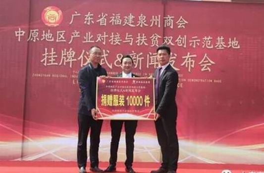 儀式上,廣東省福建泉州商會與香港磊磊集團捐贈服裝10000件,用于啟動扶貧商店。與會領(lǐng)導共同為“廣東省福建泉州商會中原地區(qū)產(chǎn)業(yè)對接與扶貧雙創(chuàng)示范基地”揭牌。隨后,與會人員共同到潤泰紡織、盛宏紡織、萬利源棉業(yè)等企業(yè)進行了參觀,并召開了廣東省福建泉州商會中原地區(qū)產(chǎn)業(yè)對接與扶貧雙創(chuàng)示范基地產(chǎn)業(yè)對接論證座談會。