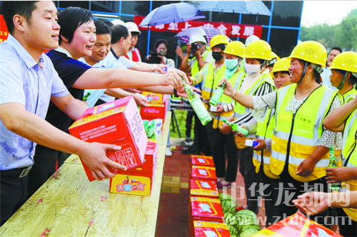 中華龍都網(wǎng)訊(周口報業(yè)全媒體記者 張勁松 蘇千 文/圖)“各級領(lǐng)導(dǎo)沒有忘記我們這些高溫下作業(yè)的農(nóng)民工,不僅對我們進行了安全知識培訓(xùn),還給我們送來了慰問品,我非常感謝他們?!鞭r(nóng)民工朱紅軍捧著香皂、花露水等防暑降溫用品,高興不已。