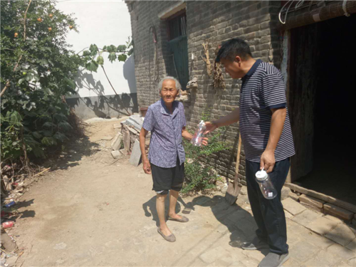 當天,張照營冒著酷暑走遍前進村所聯(lián)系的6戶貧困戶家中送“清涼杯”。和張照營一樣,在7月19日這天,太康縣委宣傳部、太康縣文廣新局的幫扶人員走村入戶,來到所幫扶的貧困群眾家中,開展扶貧扶志送“清涼”活動。