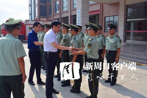 7月31日,開發(fā)區(qū)黨委書記田林,開發(fā)區(qū)管委會主任王文峰,開發(fā)區(qū)黨委委員、市公安局太昊路分局局長孟慶嶺等來到開發(fā)區(qū)消防大隊,走訪慰問。