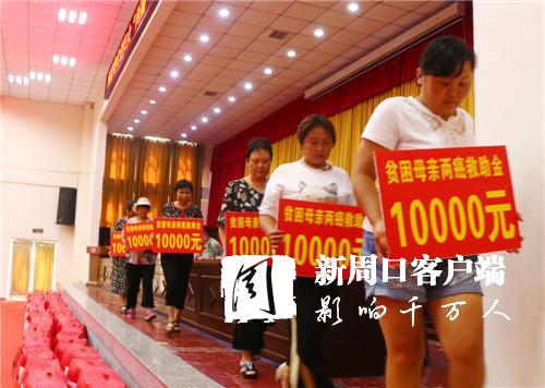 來(lái)自唐集鄉(xiāng)王莊村的吳鳳芝拿到一萬(wàn)元救助金后激動(dòng)不已,連稱(chēng):“謝謝黨委、政府,謝謝婦聯(lián)對(duì)我們的關(guān)愛(ài)……” 據(jù)了解,自河南省婦聯(lián)實(shí)施“兩癌”貧困婦女救助項(xiàng)目以來(lái), 鹿邑縣婦聯(lián)積極組織,通過(guò)鄉(xiāng)鎮(zhèn)婦聯(lián)對(duì)全縣26個(gè)鄉(xiāng)鎮(zhèn)的貧困“兩癌”患者進(jìn)行摸底和檔案審核,并通過(guò)中國(guó)婦女網(wǎng)為符合條件的“兩癌”貧困婦女申請(qǐng)救助。截止目前,鹿邑縣婦聯(lián)共向上申請(qǐng)救助金23萬(wàn)元,救助23名貧困“兩癌”患者,今天得到救助的6名貧困母親每人將獲得1萬(wàn)元的資金救助。