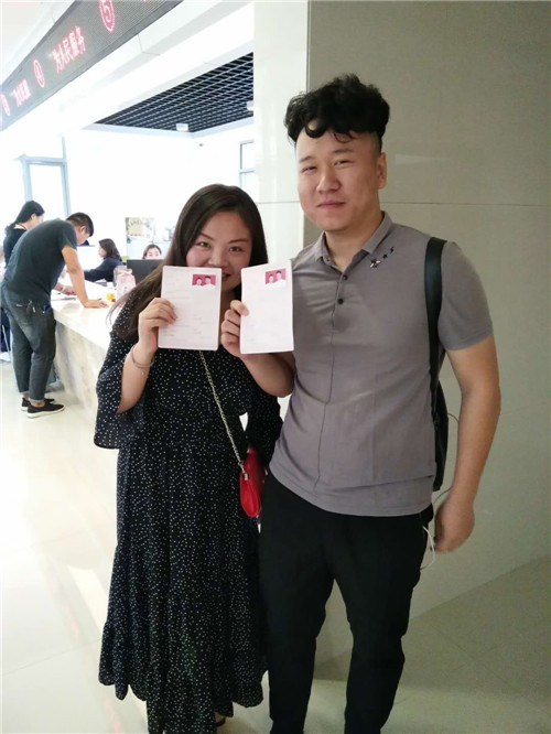 市民劉麗(化名)和男友相識多年,他們從朋友發(fā)展到戀人,今天一早就來排隊領(lǐng)證,拿到紅彤彤的結(jié)婚證,二人臉上露出幸福的笑容?!捌呦κ侵袊那槿斯?jié),今天領(lǐng)證很浪漫,以后每年的七夕,都是我們的結(jié)婚紀念日?!?劉麗說。