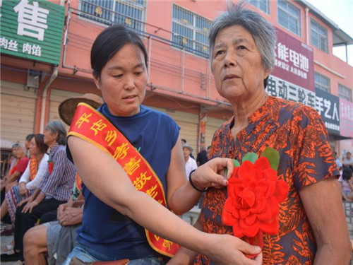 據(jù)平店鄉(xiāng)黨委書(shū)記陳靜介紹,近年來(lái),該鄉(xiāng)始終把孝善文化建設(shè)擺在突出位置,堅(jiān)持以扶貧與扶智、扶貧與扶德相結(jié)合,持續(xù)開(kāi)展了“好媳婦、好婆婆、好兒子、脫貧光榮戶”評(píng)選等一系列豐富多彩的精神文明創(chuàng)建活動(dòng),積極倡樹(shù)社會(huì)正氣,大力弘揚(yáng)時(shí)代新風(fēng),推進(jìn)了良好的家風(fēng)、民風(fēng)、鄉(xiāng)風(fēng)持續(xù)向前發(fā)展。為持續(xù)做好全鄉(xiāng)脫貧攻堅(jiān)各項(xiàng)工作,全鄉(xiāng)28個(gè)行政村、87個(gè)自然村共集中排查出來(lái)268戶、363人獨(dú)居老人戶,95%以上屬于破舊危房。通過(guò)宣傳發(fā)動(dòng),現(xiàn)在已經(jīng)接回家300多人,對(duì)破舊危房全部進(jìn)行了拆除或封堵。今天受到表彰授牌的28個(gè)家庭是在“孝善敬老、讓愛(ài)回家”活動(dòng)中涌現(xiàn)出來(lái)的“孝善敬老”的模范和標(biāo)兵。