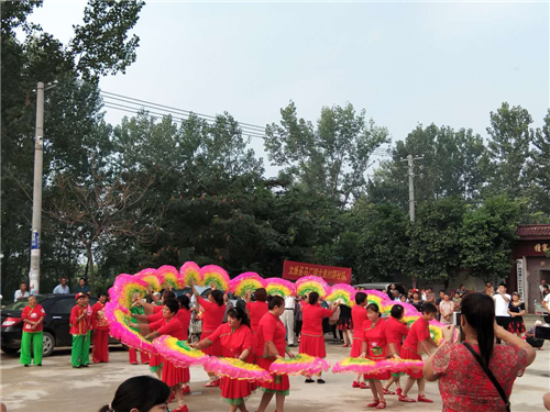 儀式前,撞寨行政村文化廣場院內(nèi)樂鼓喧天。撞寨行政村村的廣場舞表演隊(duì)、大良行政村的腰鼓表演隊(duì)、常樓的竹馬旱船表演隊(duì)、前何行政村的扇子舞表演隊(duì)等6個(gè)村扶貧政策文藝宣傳隊(duì)進(jìn)行了精彩的文藝節(jié)目表演,烘托了喜慶的氣氛。