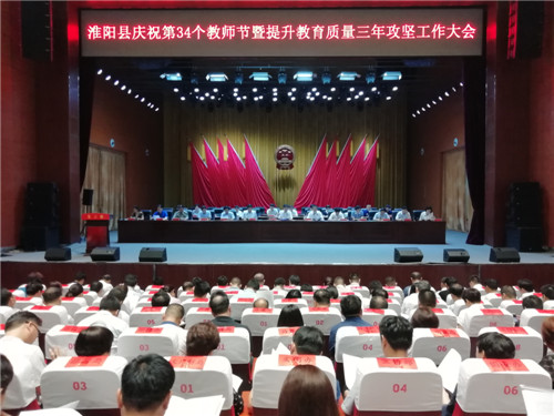 9月3日,在第34個教師節(jié)來臨之際,淮陽縣慶祝第34個教師節(jié)暨提升教育質(zhì)量三年攻堅工作大會召開。會議主要目的是總結(jié)一年來教育工作取得的成績,對教育戰(zhàn)線涌現(xiàn)出的“優(yōu)秀校長”“師德標兵”“優(yōu)秀班主任”“優(yōu)秀教師”進行表彰,并對全縣提升教育質(zhì)量三年攻堅工作進行全面動員部署。