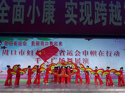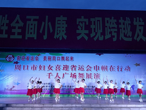 9月5日下午,伴隨著開場序曲大盤鼓《歡天喜地舞起來》,由周口市婦聯主辦的全市婦女“喜迎省運會 巾幗在行動”千人廣場舞展演活動拉開序幕。活動現場,20余支廣場舞隊伍現場展演,共同為省運會在咱家門口舉辦加油助威、增光添彩,展示了周口全民健身運動的累累碩果和新時代女性的幸福生活。