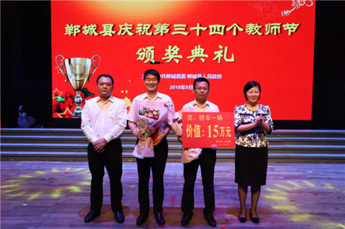 9月10日,鄲城縣舉行慶祝第34個教師節(jié)頒獎典禮,縣委書記羅文閣出席典禮并講話、縣長李全林致辭,縣領(lǐng)導(dǎo)姜永來、侯磊、吳青鋒、王智華、呂振龍、馬超、崔衛(wèi)華等出席頒獎典禮。