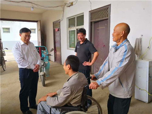 在朱屯村殘疾人貧困戶朱建舟家中,馬衛(wèi)東察看了朱建舟的家電維修店,朱建舟現(xiàn)場(chǎng)演示其改裝的殘疾人縫紉機(jī)。馬衛(wèi)東在詢問(wèn)他的生活以及收入情況后,夸贊他身殘志堅(jiān)、自強(qiáng)不息,是脫貧致富的模范。馬衛(wèi)東叮囑隨行的鄉(xiāng)、村干部要針對(duì)每個(gè)貧困戶的實(shí)際情況,制定相應(yīng)幫扶措施,確保真正脫貧、長(zhǎng)久脫貧。