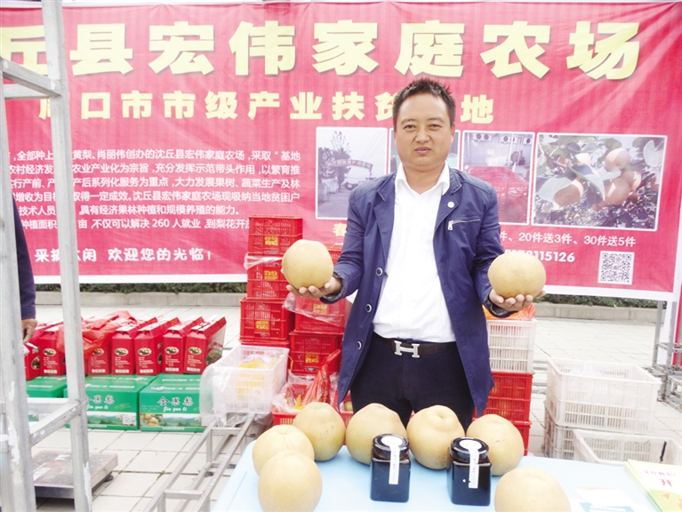 9月22日,沈丘縣舉辦第一個(gè)中國(guó)農(nóng)民豐收節(jié)慶?;顒?dòng),來(lái)自全縣22個(gè)鄉(xiāng)鎮(zhèn)(辦事處)的35家農(nóng)民種植、養(yǎng)殖合作社和家庭農(nóng)場(chǎng),展示了槐山藥、黃金梨、冬棗、木瓜、“袖珍”黃瓜、活體蜈蚣、蝎子等120余個(gè)品種。
