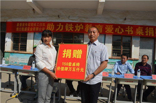 鐵爐行政村是西華縣委宣傳部定點(diǎn)扶貧村,此次由愛心企業(yè)家方凱捐贈(zèng)價(jià)值近5萬元的愛心課桌,將切切實(shí)實(shí)地改善孩子們的學(xué)習(xí)條件。