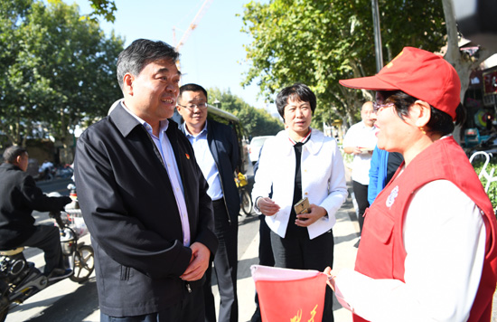 10月10日上午,市委書記、七一路路長(zhǎng)劉繼標(biāo)到分包道路七一路調(diào)研督導(dǎo)市容環(huán)境。記者 王映 攝