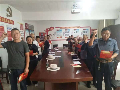 “我志愿加入中國共產黨,擁護黨的綱領,遵守黨的章程,履行黨員義務……”在汲水鄉(xiāng)張嶺行政村室,汲水鄉(xiāng)黨委副書記王申帶領全體黨員面對黨旗,一起重溫入黨誓詞,并學習黨章黨規(guī)。