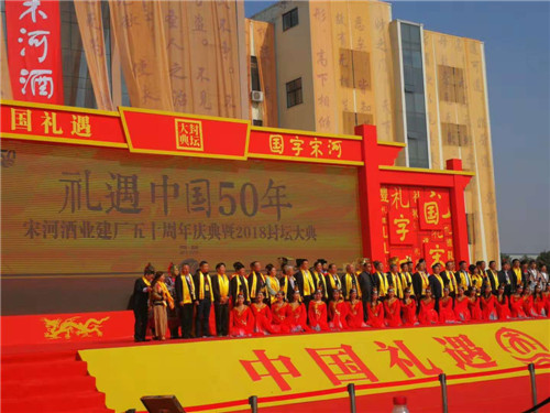 金秋十月,五谷豐登,神州大地,秋釀飄香。在這美好的季節(jié),地處老子故里的河南宋河酒業(yè)迎來(lái)了她五十歲華誕。10月30日,“禮遇中國(guó)五十年——宋河酒業(yè)建廠五十周年慶典暨2018封壇大典”在鹿邑宋河酒業(yè)生產(chǎn)園區(qū)隆重開(kāi)幕,省市縣領(lǐng)導(dǎo)、行業(yè)專家與來(lái)自全國(guó)各地的經(jīng)銷商、供應(yīng)商以及全國(guó)知名品牌的白酒企業(yè)近1500人共同見(jiàn)證這一時(shí)刻,見(jiàn)證在豫酒轉(zhuǎn)型升級(jí)政策推動(dòng)下、宋河酒業(yè)的振興之路。