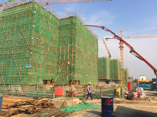 據(jù)該項(xiàng)目副總經(jīng)理王志強(qiáng)介紹,目前該項(xiàng)目南地塊基坑支護(hù)主體已經(jīng)完成,正在進(jìn)行土方的開挖,已出土約20萬立方米,完成總出土量的50%,地下室底板抗浮錨桿完成30%。中區(qū)地塊共13棟住宅,其中2棟已施工至主體7層,2棟施工至主體5層,其余9棟正在進(jìn)行正負(fù)零以下主體施工。一字型商業(yè)金街主體施工已經(jīng)封頂 。萬達(dá)展示中心已于10月27日正式對(duì)外開放。北地塊商業(yè)區(qū)正在進(jìn)行清表工作,公寓區(qū)清表工作已結(jié)束,樁基已經(jīng)進(jìn)場(chǎng)。